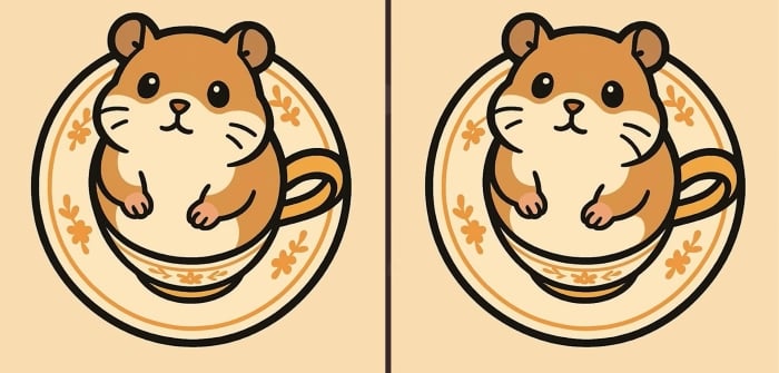 Tak čo, ste pripravení na ďalšiu výzvu? Pozrite sa pozorne na dva obrázky škrečka sediaceho v pohári. Na prvý pohľad môžu vyzerať rovnako, ale sú medzi nimi tri malé rozdiely. Myslíte si, že ich všetky nájdete za 51 sekúnd? Vyskúšajte to a otestujte svoju ostrosť zraku!
