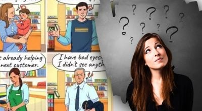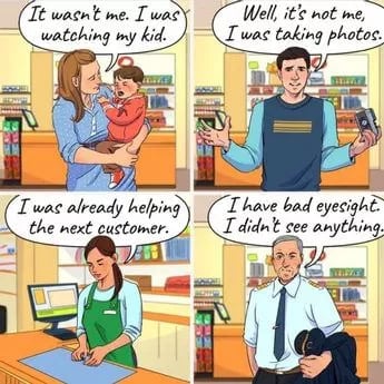 Stačí sa pozrieť na obrázok nižšie a určiť, kto z ľudí v obchode ukradol niekomu peňaženku. Traja z ľudí na obrázku hovoria pravdu, ale jeden z nich klame.