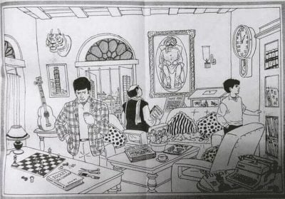 6. Na druhom konci miestnosti je na stole gitara, ale jej vrchná časť vyzerá skôr ako na sitári.