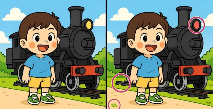 Tak čo, ste pripravení na ďalšiu výzvu? Pozorne si prezrite dva obrázky chlapca stojaceho vedľa parného vlaku. Na prvý pohľad môžu vyzerať rovnako, ale sú tu tri malé rozdiely. Myslíte si, že ich všetky nájdete za 29 sekúnd? Skúste to a otestujte svoju ostrosť zraku!