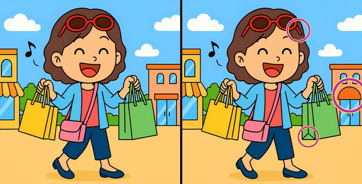 Tak čo, ste pripravení na ďalšiu výzvu? Pozrite sa pozorne na dva obrázky dievčaťa s nákupnými taškami. Na prvý pohľad môžu vyzerať rovnako, ale sú tu tri malé rozdiely. Myslíte si, že ich všetky nájdete za 71 sekúnd? Skúste to a otestujte svoju ostrosť zraku!