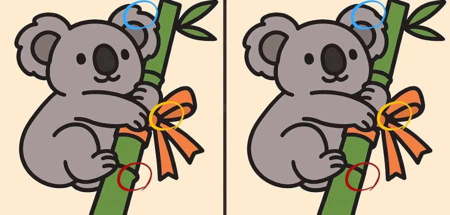 Tak čo, ste pripravení na ďalšiu výzvu? Pozrite sa pozorne na dva obrázky koaly objímajúcej bambus. Na prvý pohľad možno vyzerajú rovnako, ale sú tu tri malé rozdiely. Myslíte si, že ich všetky nájdete za 33 sekúnd? Vyskúšajte to a otestujte svoju ostrosť zraku!